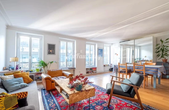 Appartement 4/5 pièces - 3ème étage avec ascenseur - Exclusivité - Paris 10ème - St Vincent de Paul - Dans un immeuble ancien, nous vous proposons un bel appartement traversant de 4/5 pièces, situé au 3ème étage avec ascenseur, d'une superficie de 102,09 m2 Loi Carrez, comprenant une entrée, un bel espace de vie de plus de 36 m², une cuisine semi ouverte toute équipée, 3 chambres dont une avec salle de bains attenante, une salle d'eau avec WC, un WC séparé, une cave. Cet appartement, au plan agréable en étoile, en bon état général, vous séduira par sa belle luminosité, son ensoleillement (triple exposition Est/Ouest/Sud) et son calme.Budget