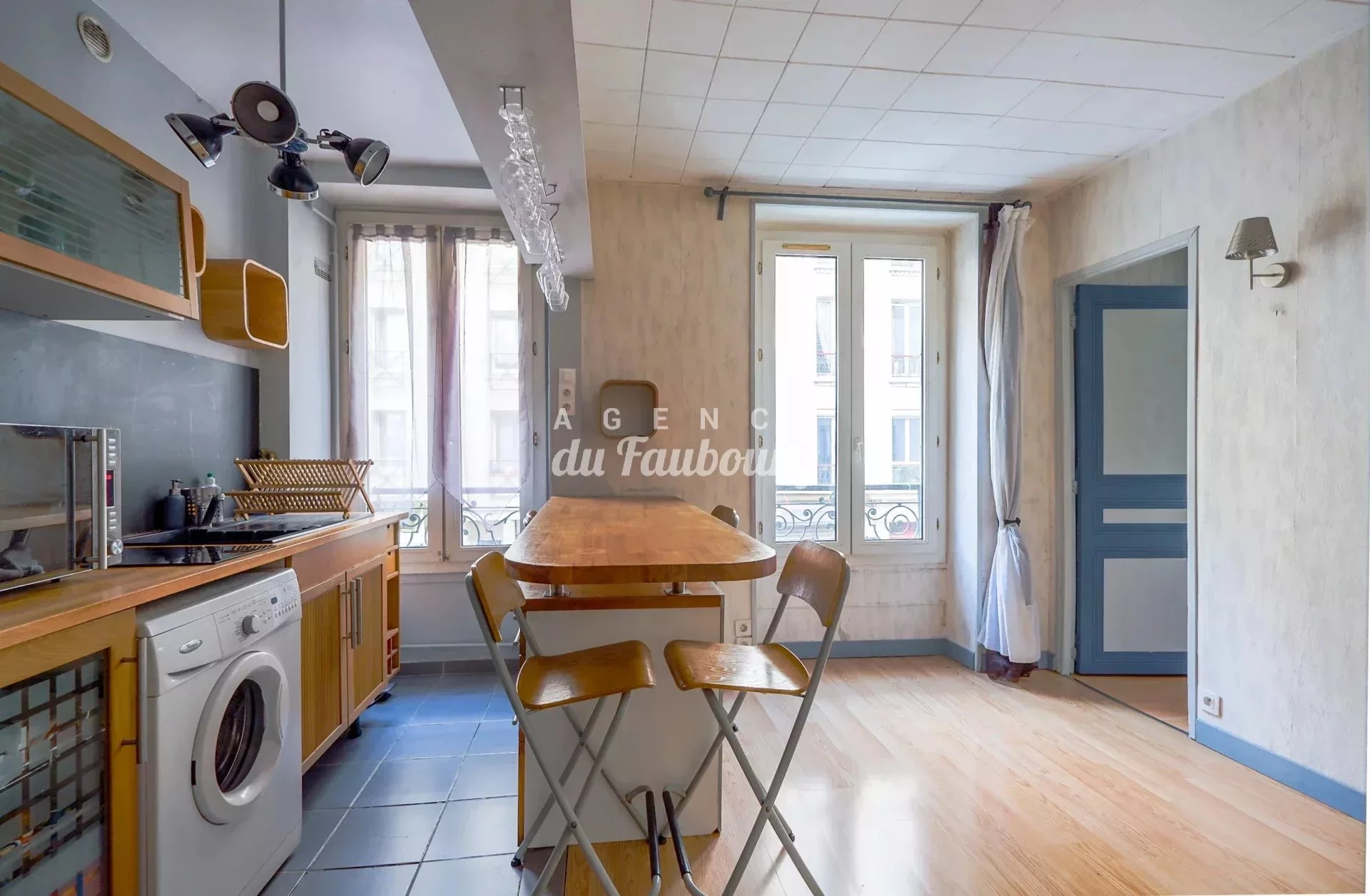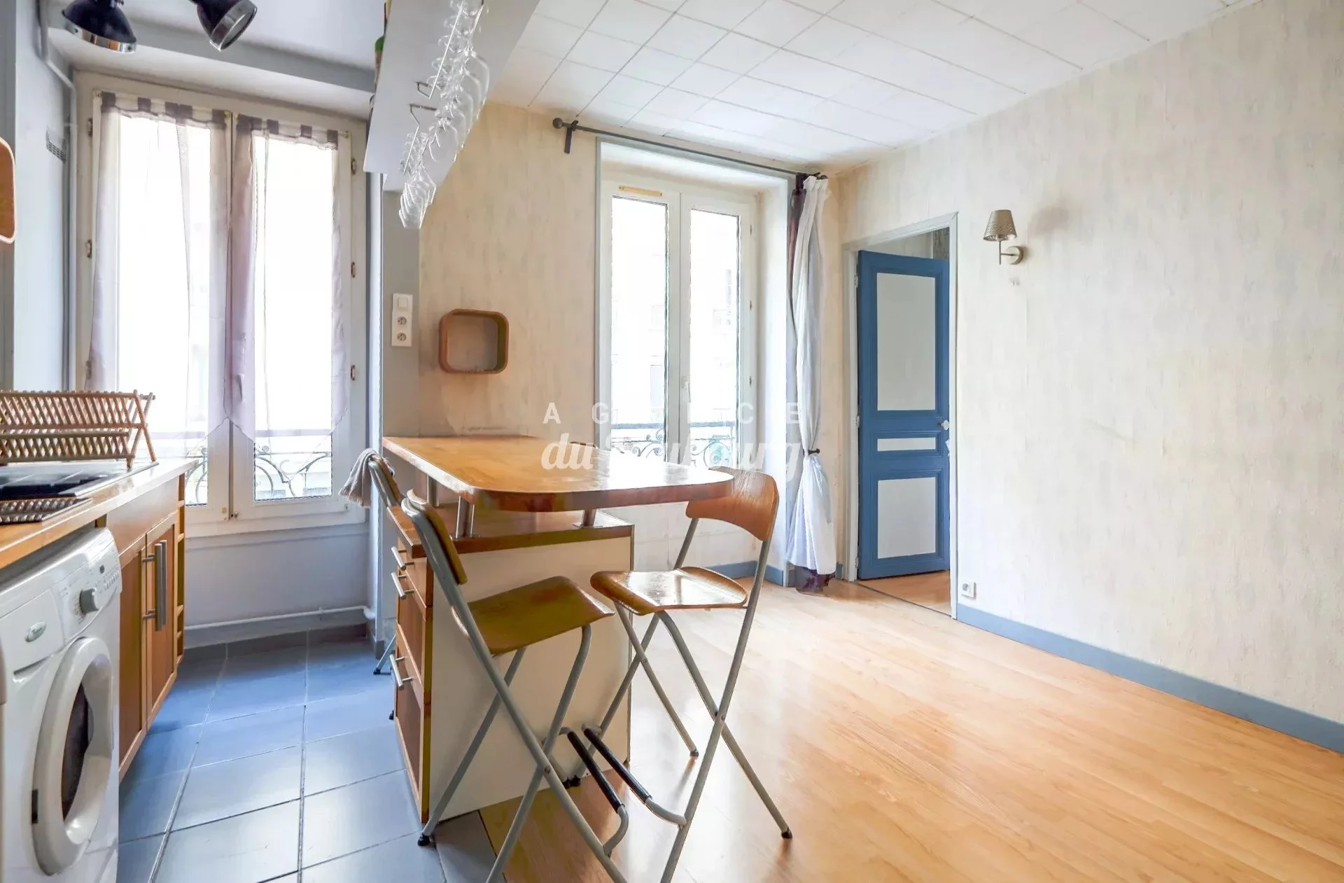 Appartement 2 pièces de 26m2 parfaitement optimisé Exclusivité - rue Boucry - A proximité des commerces et transports (Métro Marx Dormoy L12), dans un immeuble ancien bien entretenu (ravalements intérieur et extérieur récents), nous vous proposons un appartement 2 pièces, situé au 1er étage par escalier, d'une superficie de 26,80 m² (25,85 m² Loi Carrez), comprenant une entrée, un séjour de 15 m² avec cuisine ouverte équipée, une chambre, une salle d’eau avec WC, une cave. Lumineux et ensoleillé (exposition Sud-Ouest), cet appartement vous séduira par son plan optimisé sans perte d'espace. Récents travaux de copropriété réalisés.Budget