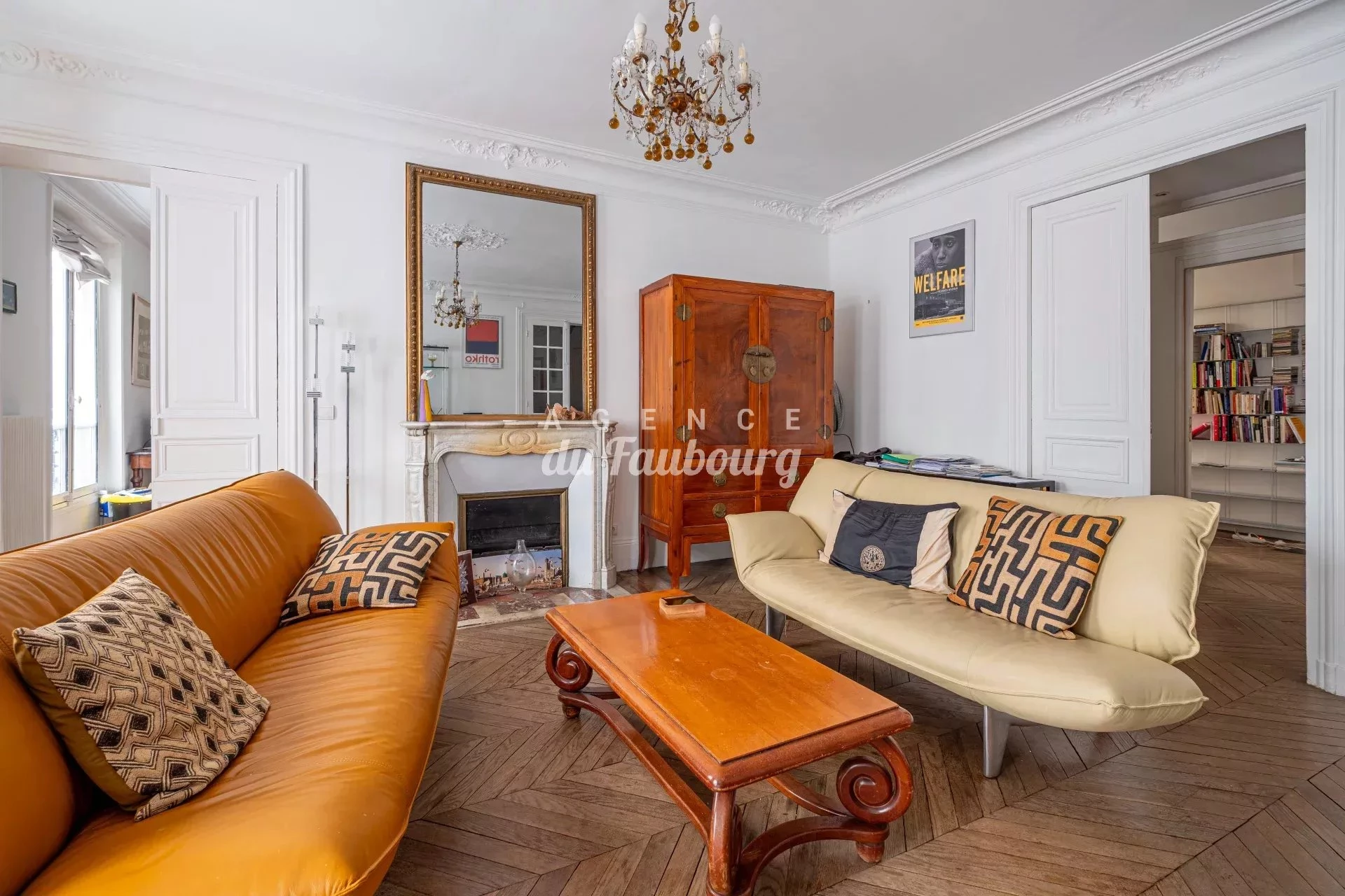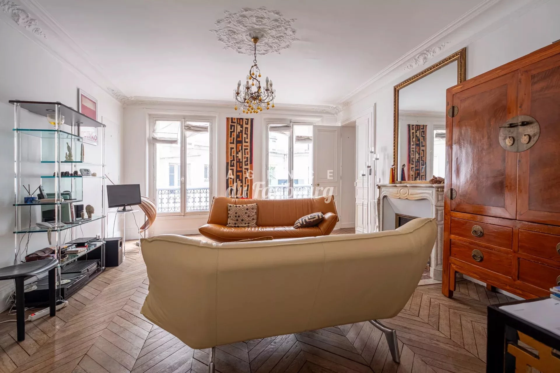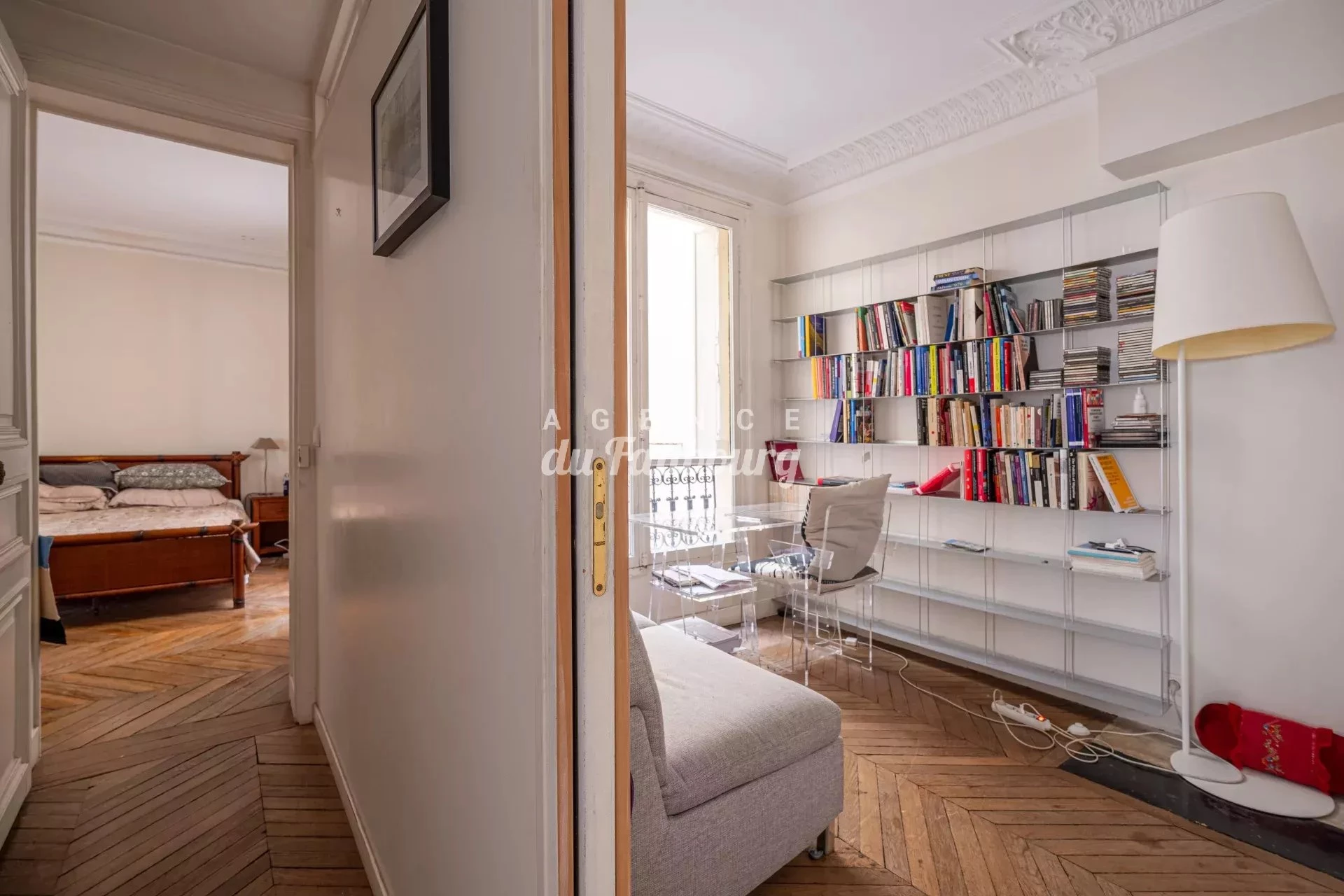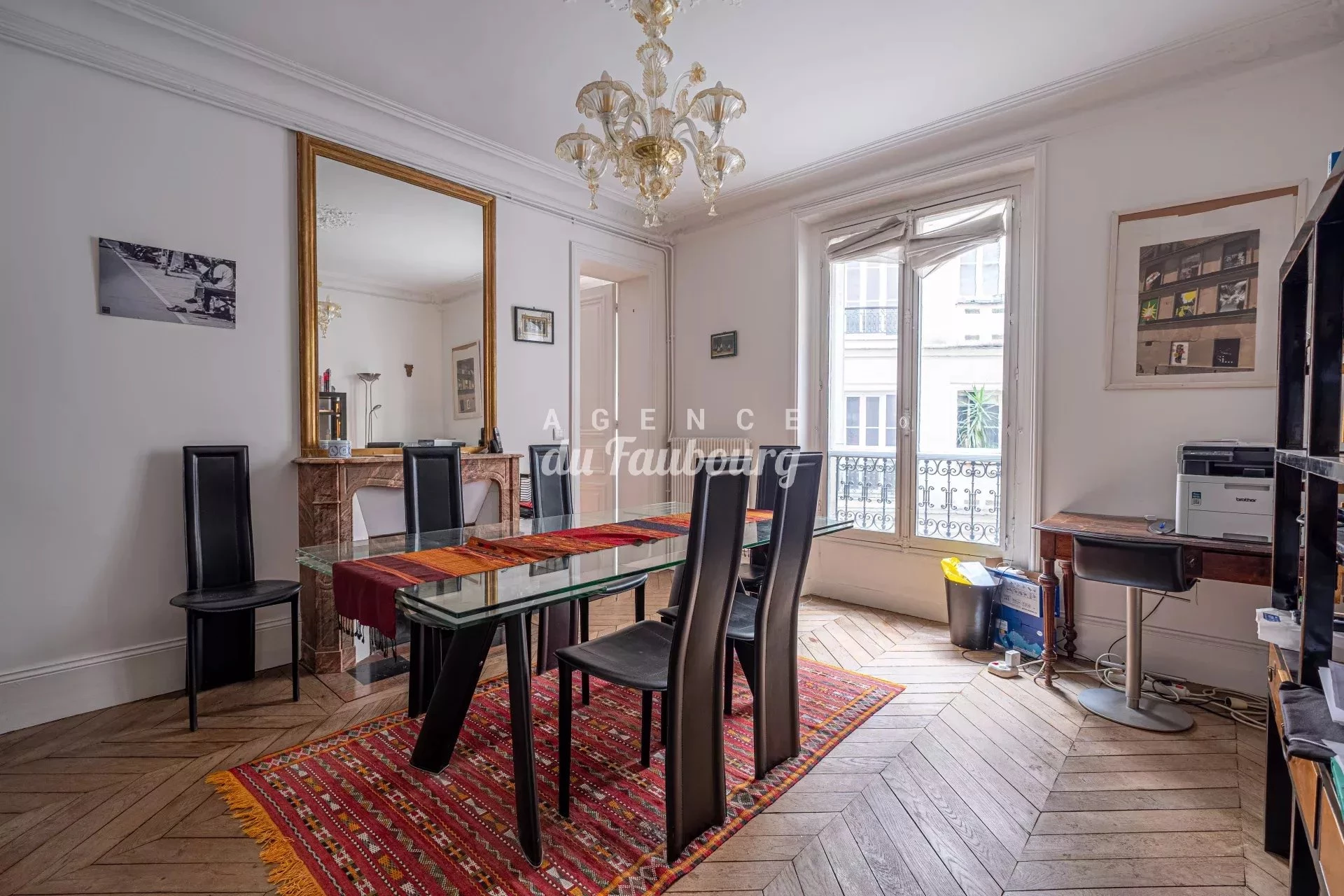 Appartement 4 pièces de 83 m2 - Paris 9ème - rue du Faubourg Poissonnière - Exclusivité - Dans un bel immeuble Haussmannien, l'Agence du Faubourg vous propose un appartement de quatre pièces, traversant sur triple cour, d’une superficie de 82,98 m2 Loi Carrez, situé au 1er étage avec ascenseur, comprenant une entrée, un salon, une salle à manger, une cuisine ouverte, une chambre (3 possible), un bureau, une salle d'eau avec rangements, toilettes séparés, une cave. Cet appartement en bon état général vous séduira par son charme de l'ancien conservé (parquet, moulures, cheminées), son calme absolu, et son plan optimisé sans perte d'espace.Budget