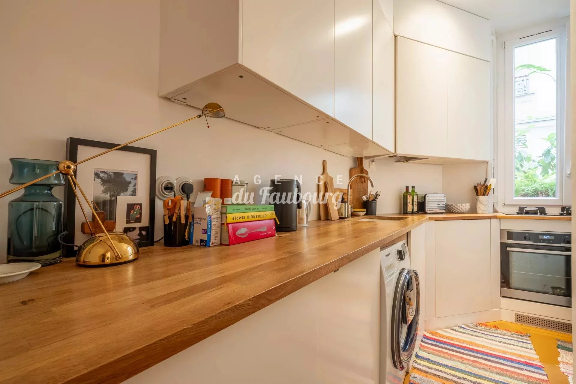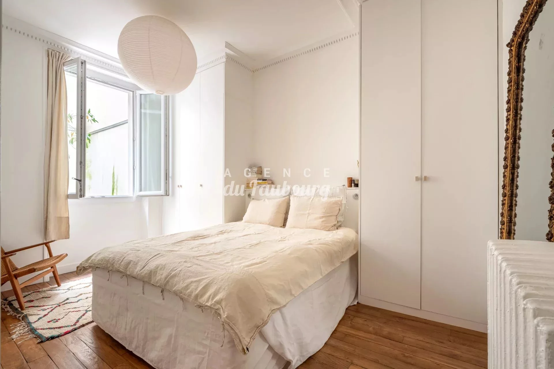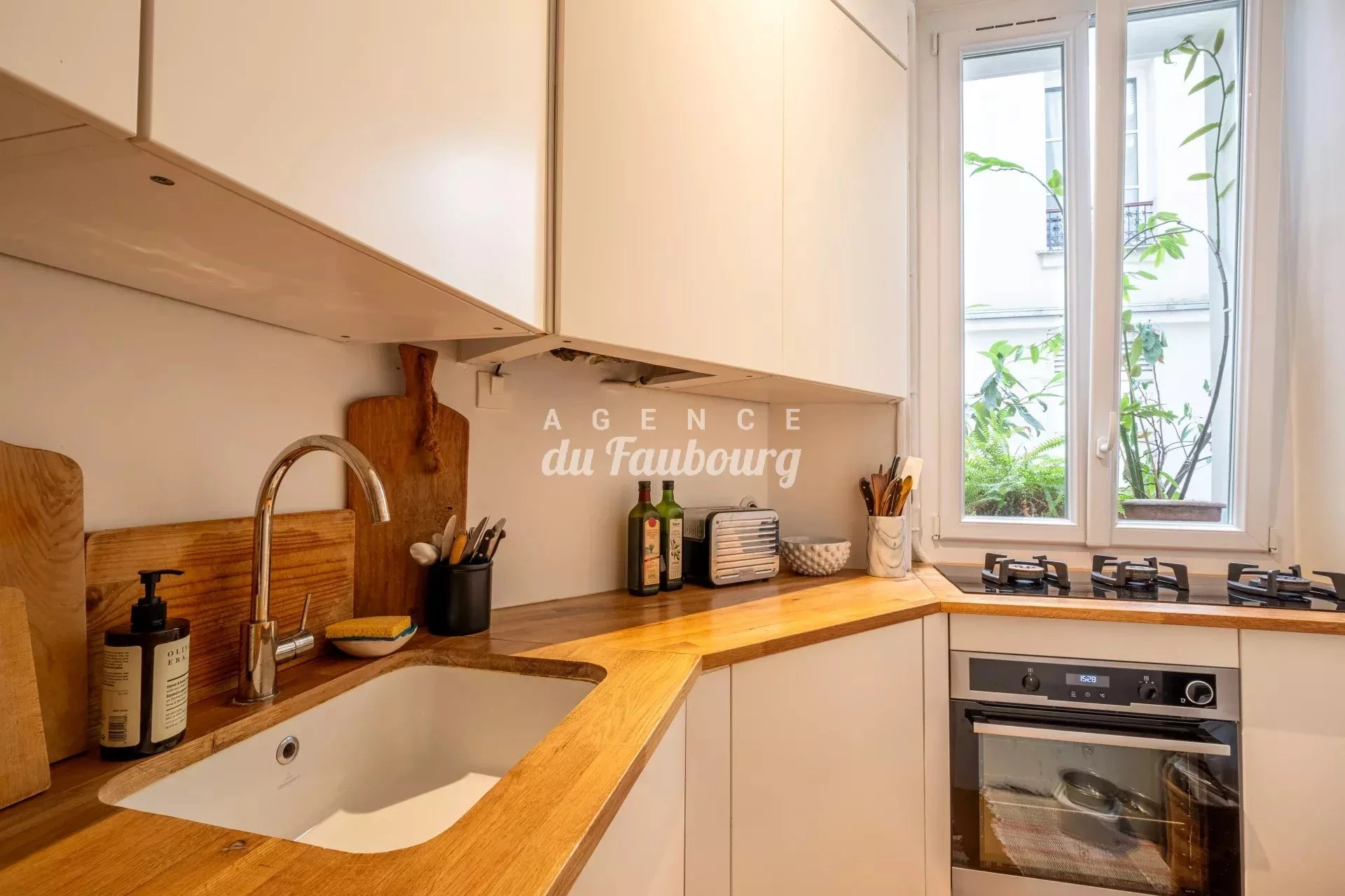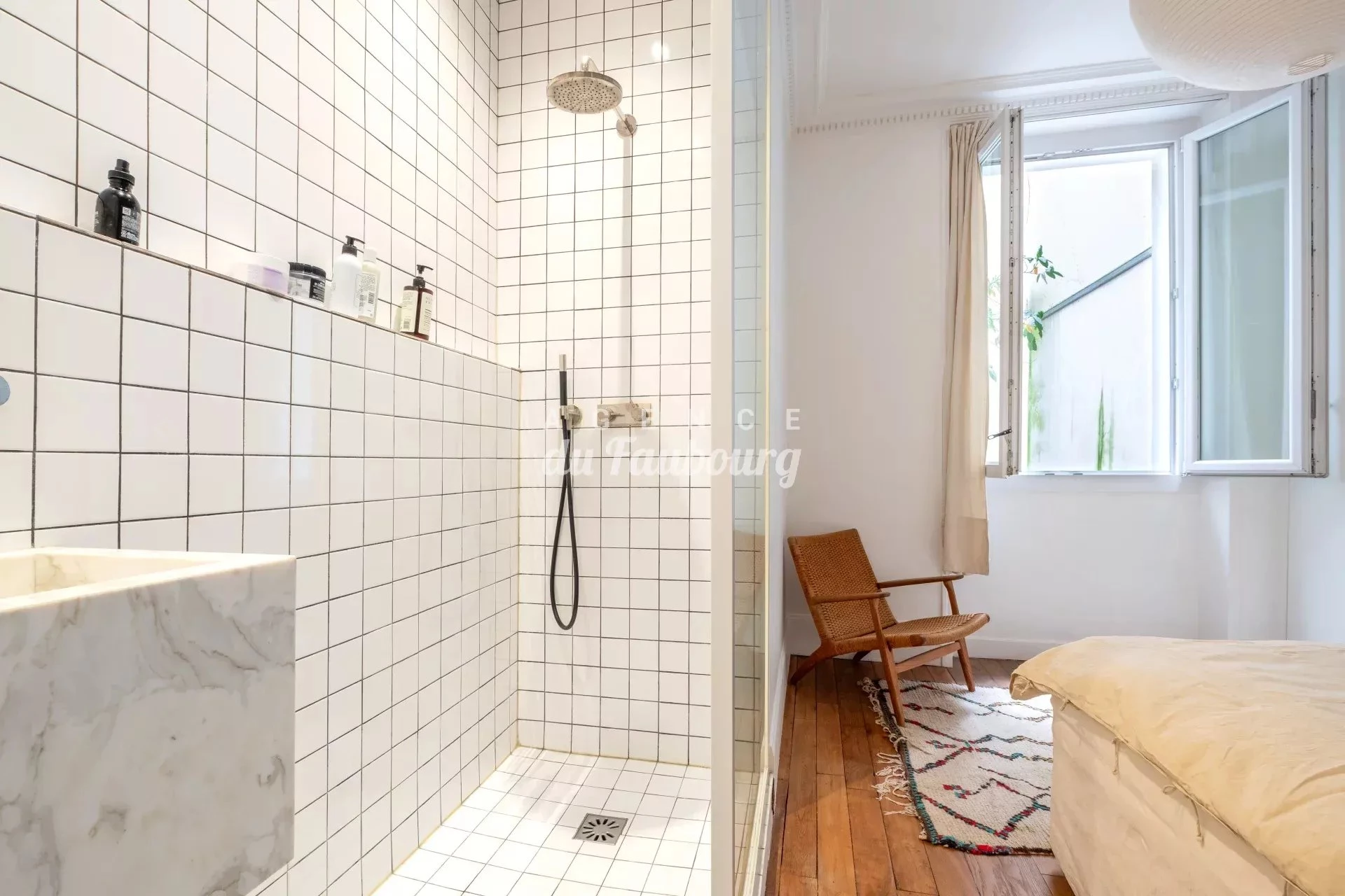 Voie privée - Square Pétrelle - 2 pièces de 61m2 Paris 9ème - Trudaine / Rochechouart - Dans un bel immeuble Haussmannien de standing, situé au cœur d'une jolie voie privée et arborée, récemment sécurisée, l'Agence du Faubourg vous propose un appartement traversant de deux pièces, d’une superficie de 61,08 m2 (59,64 m2 Loi Carrez), au rez-de-chaussée comprenant une entrée, un séjour de 26m2, une cuisine séparée équipée, une grande chambre de 15m2 avec douche intégrée et dressing sur mesure, un WC séparé, deux caves.